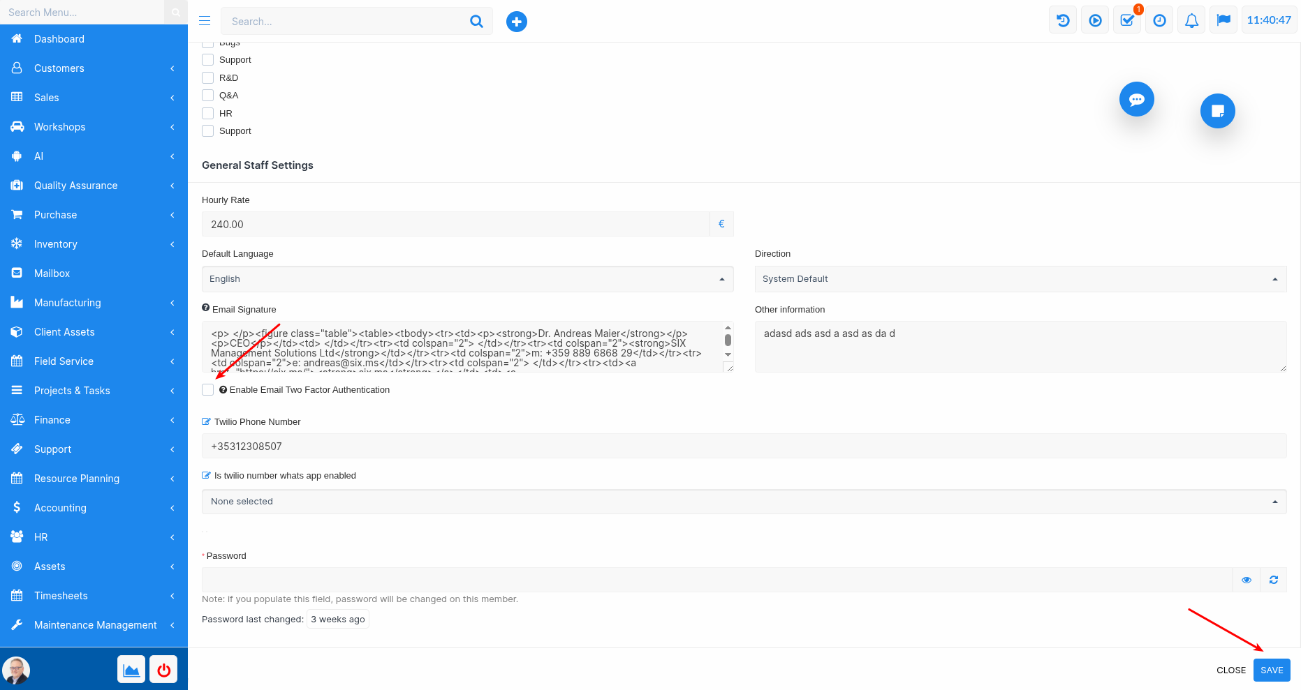 Go to HR → Staff Management.