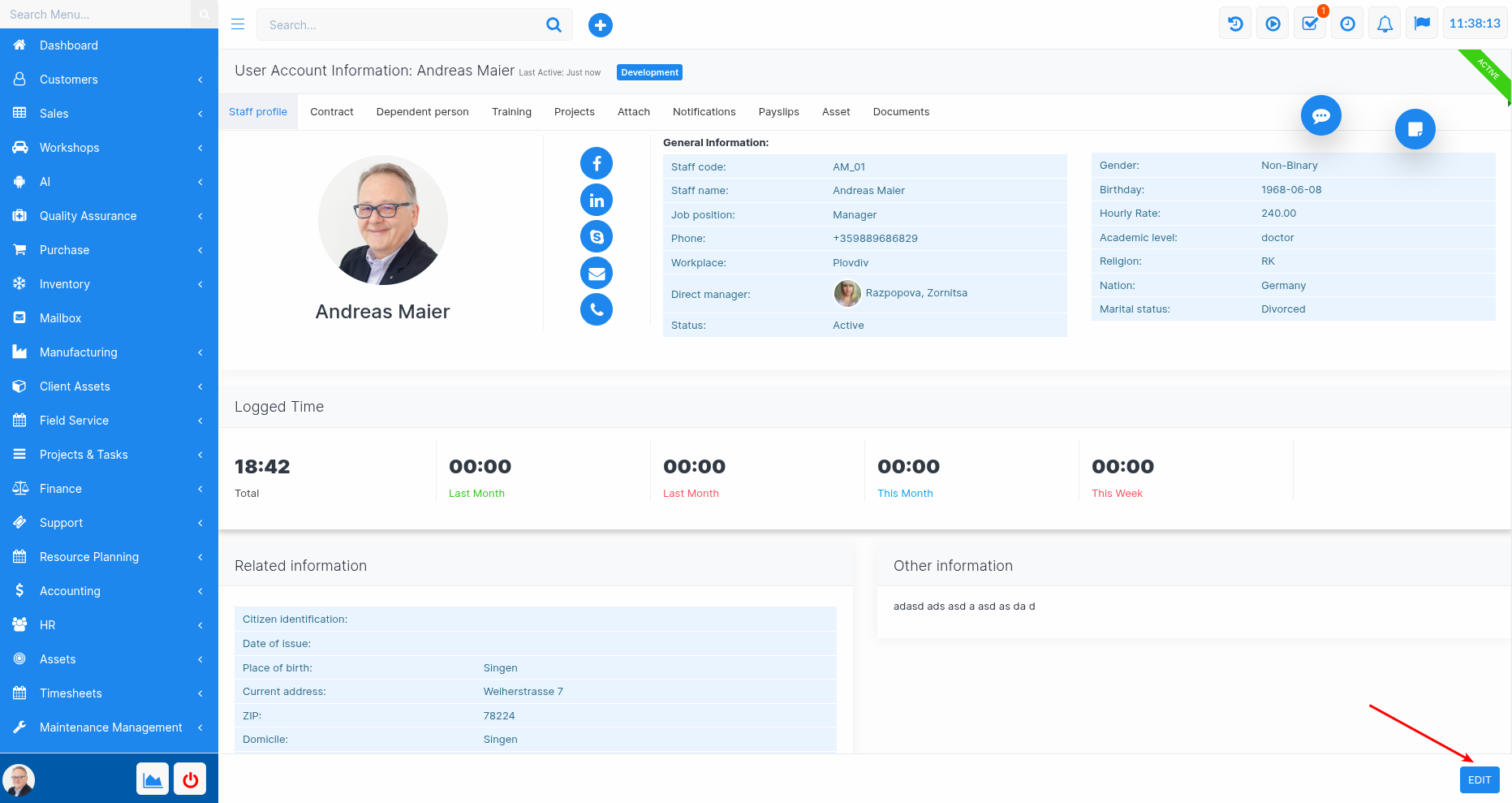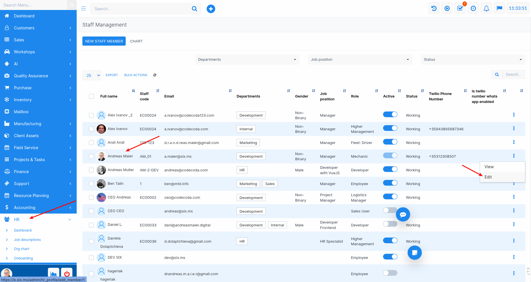 In the main menu, go to:HR → Staff Management