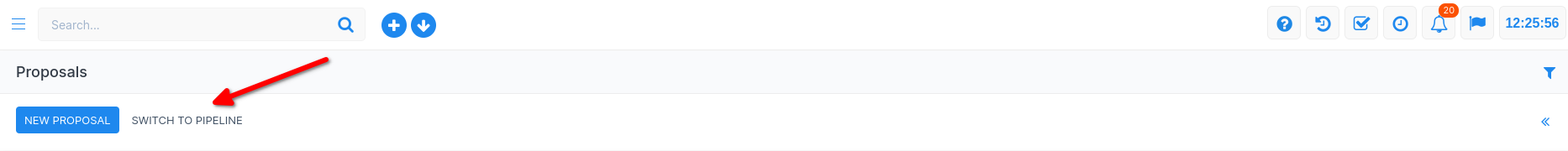Accessing the Proposal Pipelines in SIX ERP is straightforward and user-friendly, designed to provide you with a seamless transition between different viewing modes for optimal proposal management. When you're in the proposals list view, simply look towards the top bar of the interface. Here, you'll find the "Switch to Pipeline" button, a convenient feature that allows you to toggle between the standard list display and the dynamic Proposal Pipelines view. By clicking this button, you can effortlessly switch to the KanBan-style Pipeline view, enabling you to visually track the status of each proposal across the various stages of your sales process. This functionality is integral for those looking to enhance their workflow and maintain a clear overview of proposal statuses in real-time.